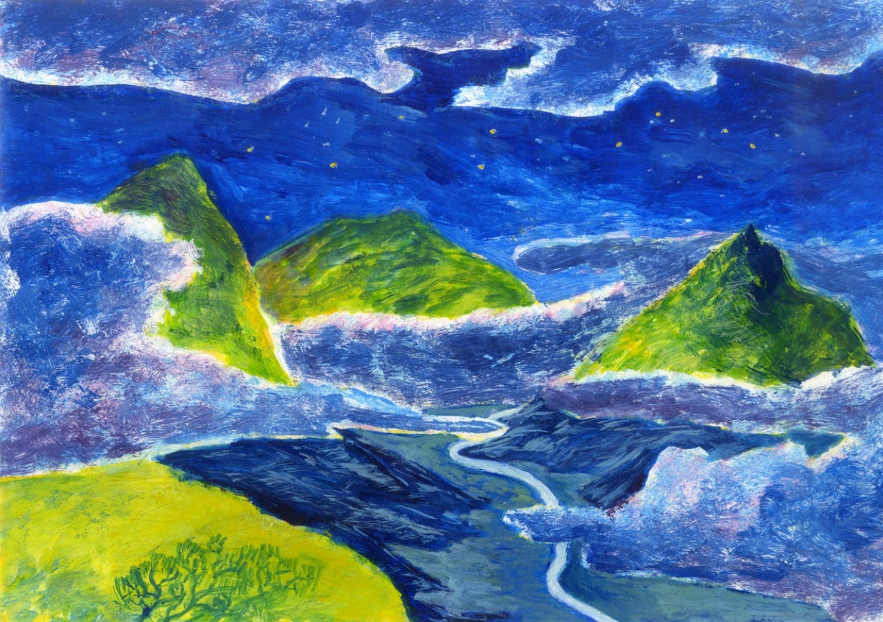 Martin Faure accorde une place centrale à la nature dans des tableaux-paysages oniriques, poétiques, contemplatifs. Né à Paris en 1991, diplômé des Beaux-Arts de Paris en 2018, il a créé un monde bien à lui, tissé de voyages et de résidences, de lumières et de visions, qui composent son imaginaire pictural. L’Écosse ne lui était pas inconnue, et pour Inverness, il a réinventé un territoire minéral et végétal : «Inverness, ces lettres prononcées dans un souffle m’évoquent de vastes territoires qui m’ont enivré alors que j’arpentais les chemins de ce paysage époustouflant pris dans la brume cotonneuse. Un temps suspendu où l’atmosphère est une mise en scène, un chuchotement dans la contemplation. La sève des arbres y exalte des senteurs intenses, l’onde pure ruisselle sur une roche qui peut être la ruine d’un palais enlacé par tant d’années dans ce paysage mythologique…».
