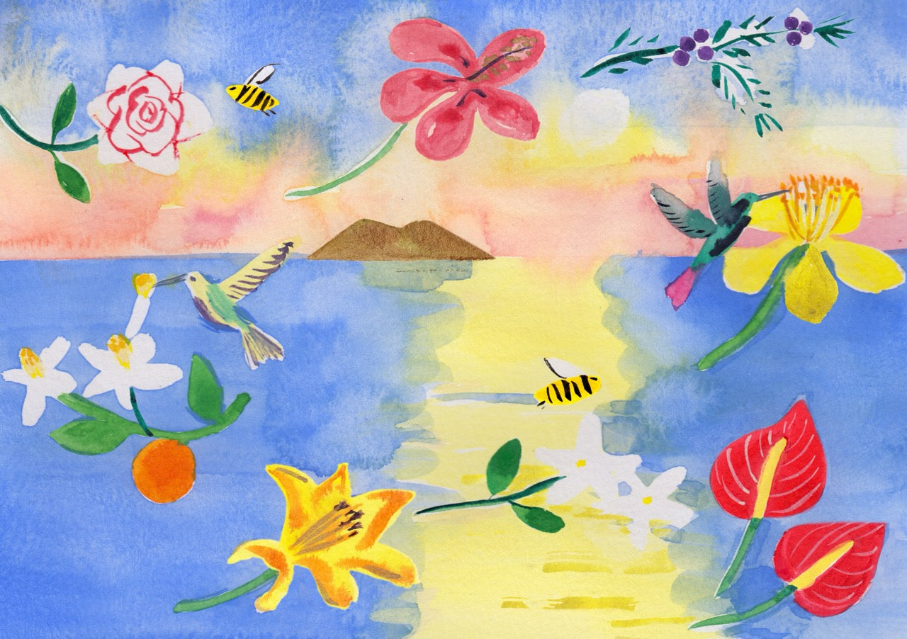 Despite her frequent illustrations for the press, the inherent inclination for travel, emblematic of the Memo Paris characteristic, inevitably captivated her. Her sunny line, her brightly coloured watercolours, her expressive and playful scenes which characterize her graphic style have highlighted the perfumes Argentine and Ilha do Mel.